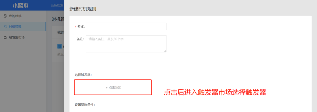 点击“使用”按钮,会跳转到新建时机的弹窗,快速进行时机创建。