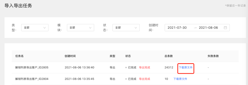 步骤5:进入“导出任务列表”,下载导出文件。