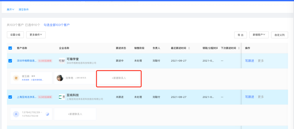 支持客户名称、企业名称、手机号搜索,手机号是添加的联系人的手机号;