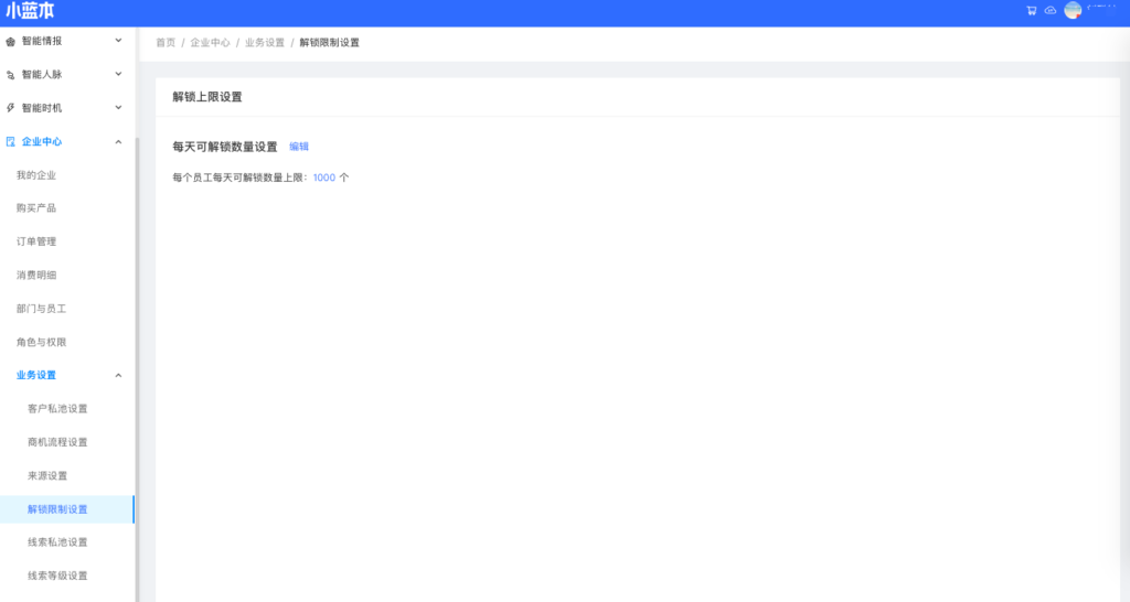 解锁上限设置:设置每个员工每天可解锁的企业上限。