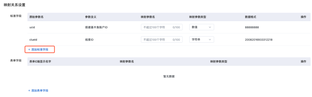 直接将【原始参数名】复制并并黏贴至【映射参数名】,即可将百度线索字段自动关联映射至“资源池字段中文名”。