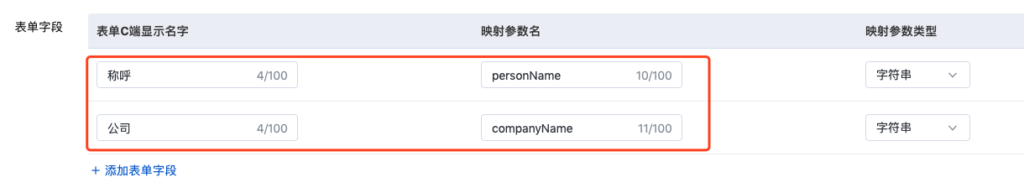 将投放广告(表单)的中文名称填入【表单C端显示名字】,映设参数名填写小蓝本资源池对应参数名:
