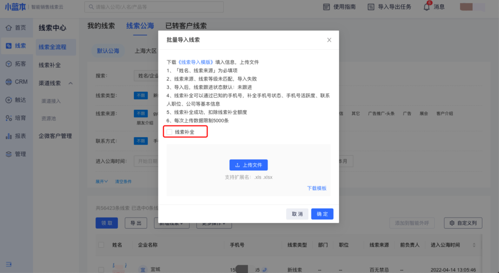 2.线索全流程-线索公海-新增线索-批量导入-线索补全