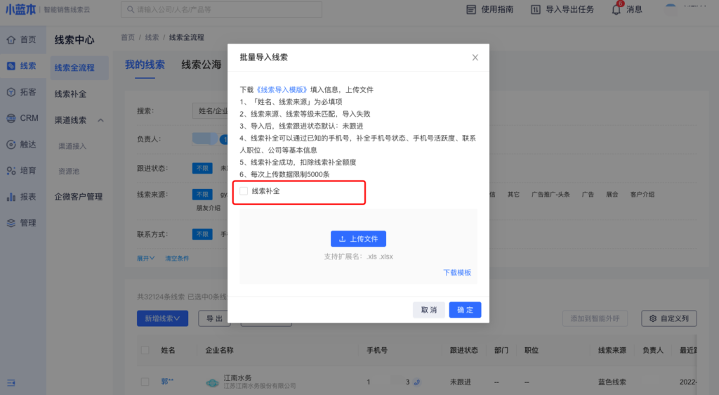 1.线索全流程-我的线索-新增线索-批量导入-线索补全