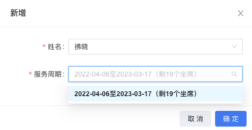 2、选择对应的员工姓名、服务周期即可创建小号坐席