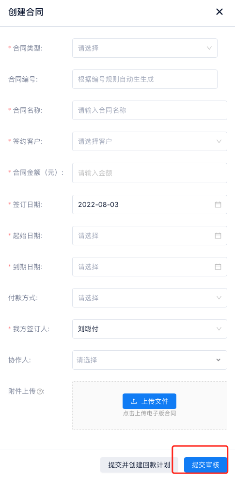 开启合同、回款记录审批流程后,创建合同、回款记录,需要审批。