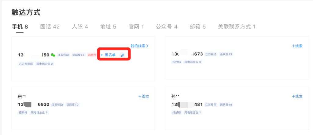 企业主页联系方式,仅当本人已将该企业添加为客户、或将联系人添加为线索后,才会展示双呼的拨号按钮。公海客户、公海线索,均不展示拨号按钮。