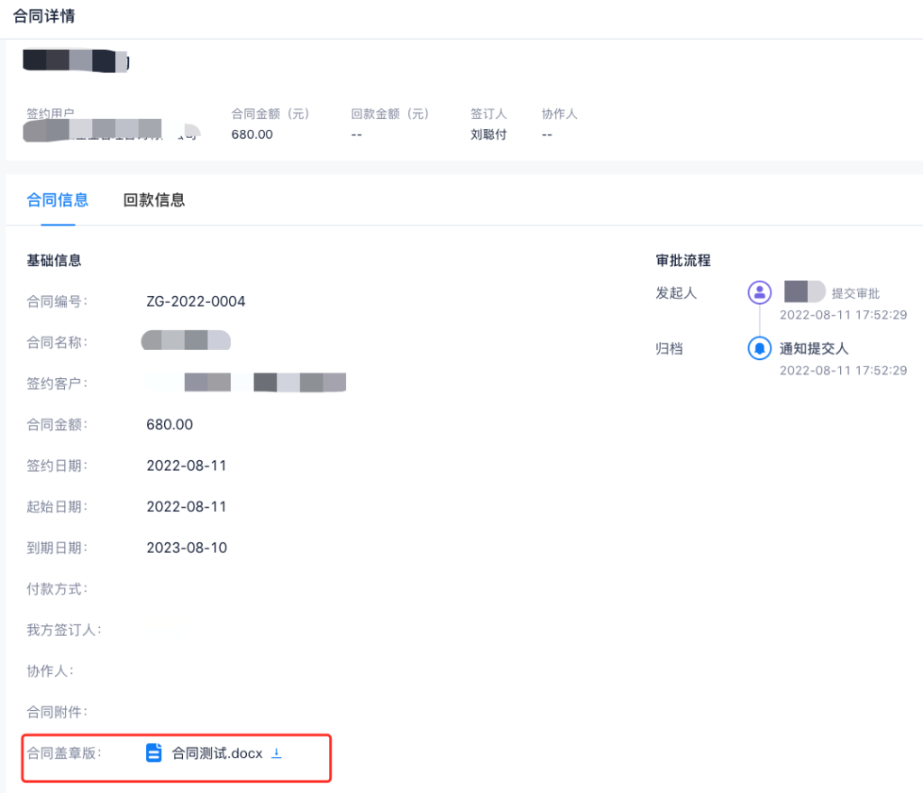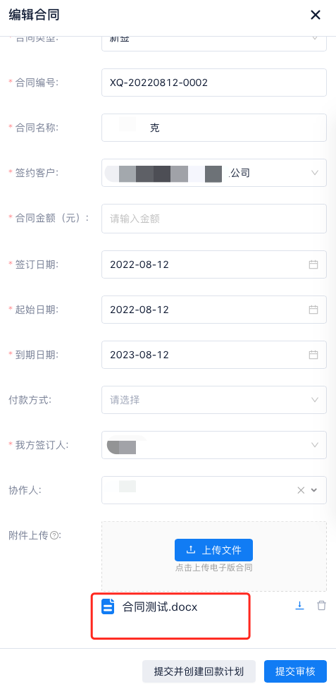 合同附件和上传doc文件,审批完成可上传盖章版合同