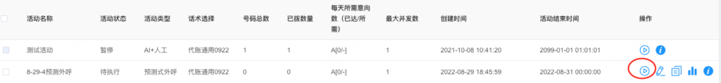 成功创建活动之后,点击开始即可开始预测式外呼任务