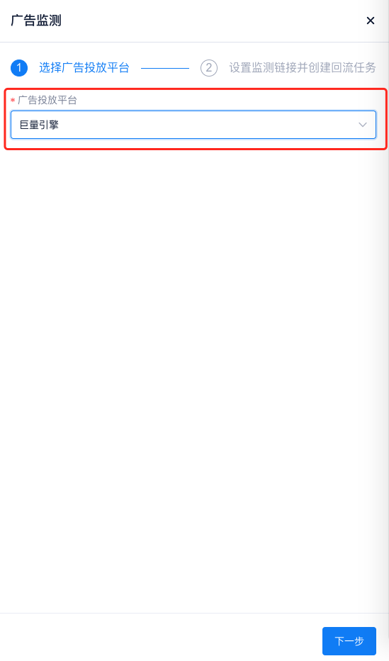 (1)先选择【广告投放平台】,点击【下一步】设置任务;