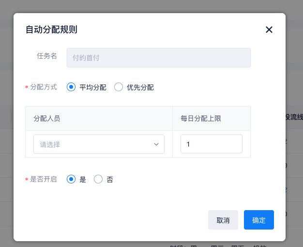在列表中点击【分配规则】,弹窗分配规则设置弹窗。
