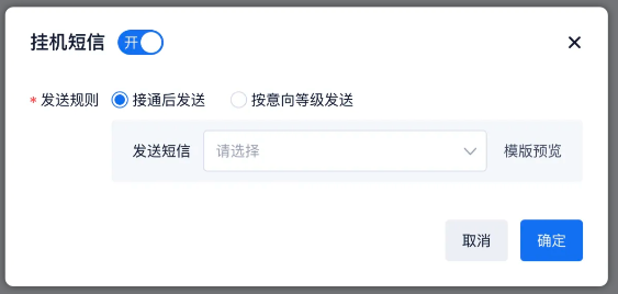 【1】选择【接通后发送】,则电话接通挂机后自动发送对应挂机短信