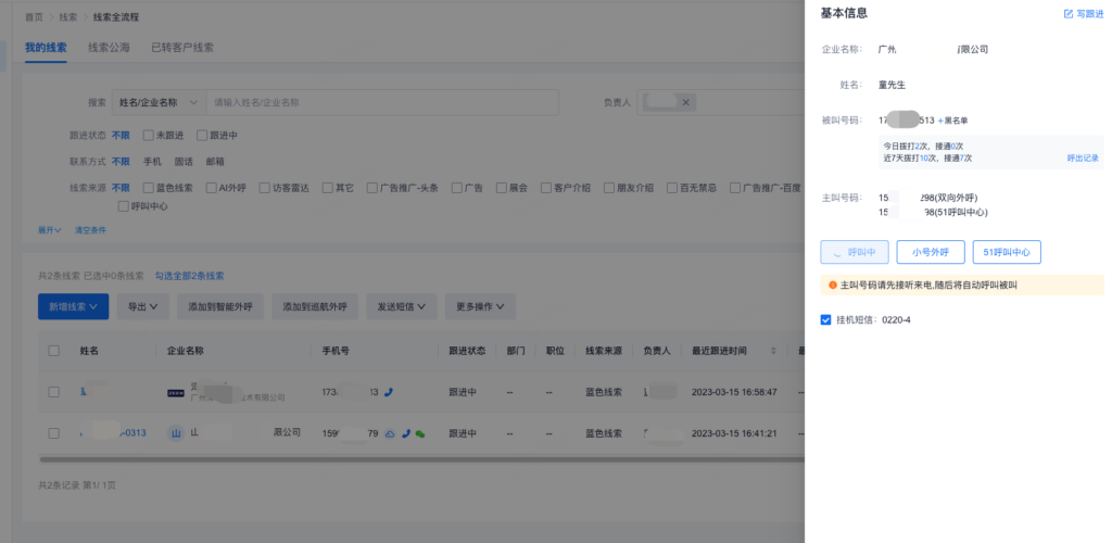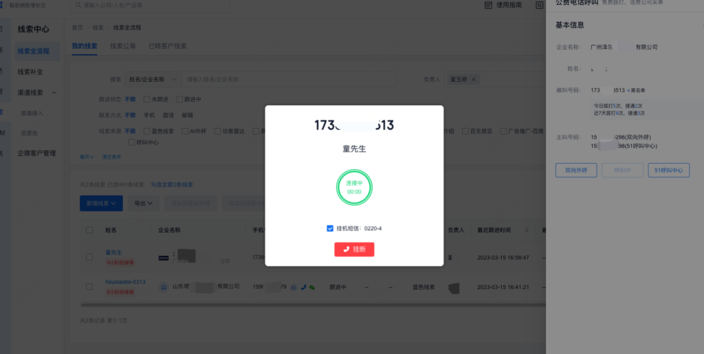 开启呼叫中心挂机短信后,在外呼成功后将显示挂机短信设置项,符合挂机短信规则将在挂机后发送短信。如果本次通话不发送挂机短信,可及时取消挂机短信勾选