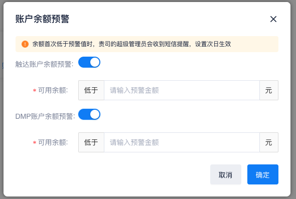 DMP账户余额包含可用余额、冻结金额两部分,冻结金额为投放广告访客识别过程冻结的相应金额。