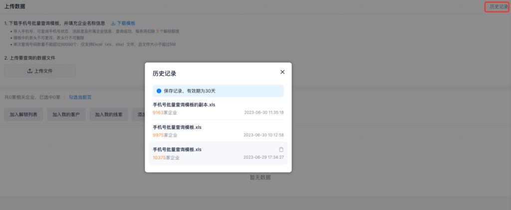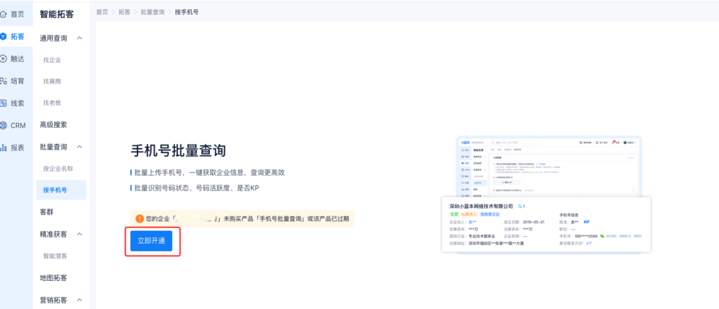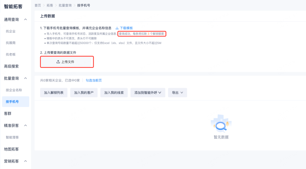 手机号批量查询功能,需要找专属客户成功经理开通。