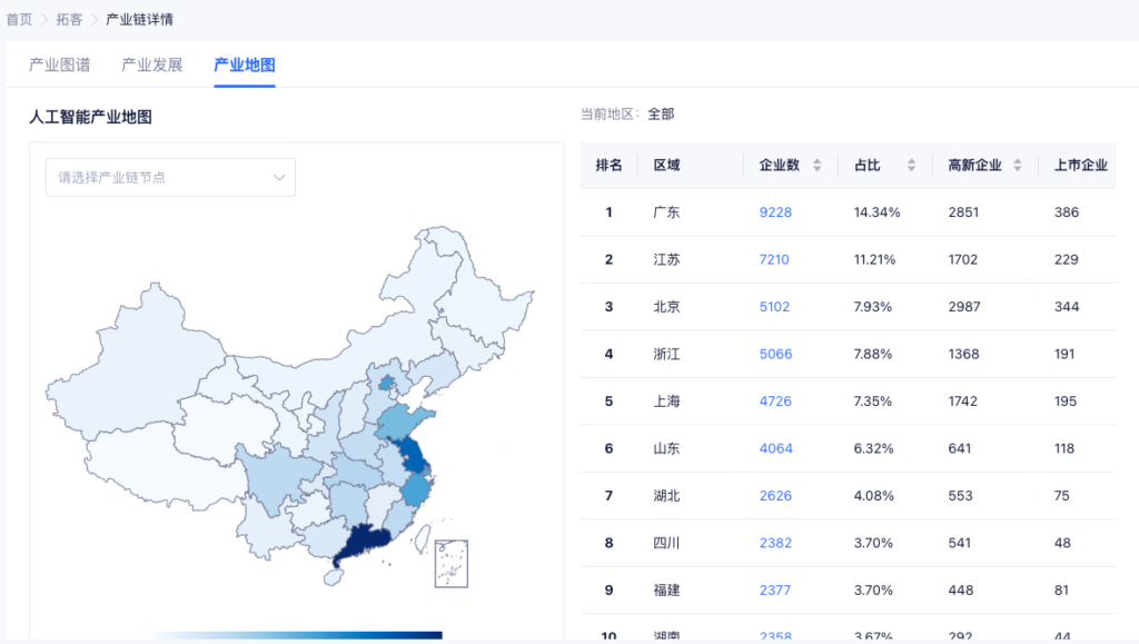 产业链各节点的热力地图和企业明细,以及各节点的代表性企业。