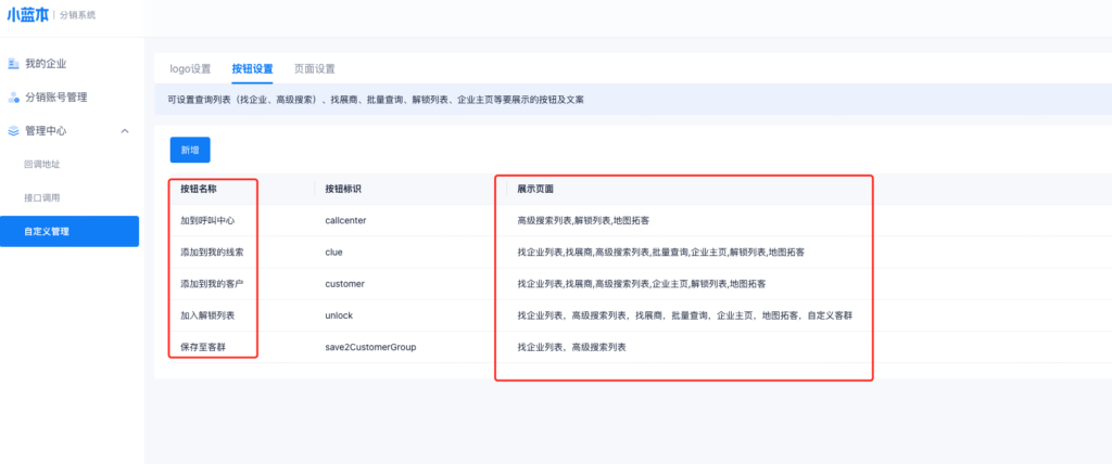 根据自己业务需要自定义找企业等页面的按钮名称、展示页面。